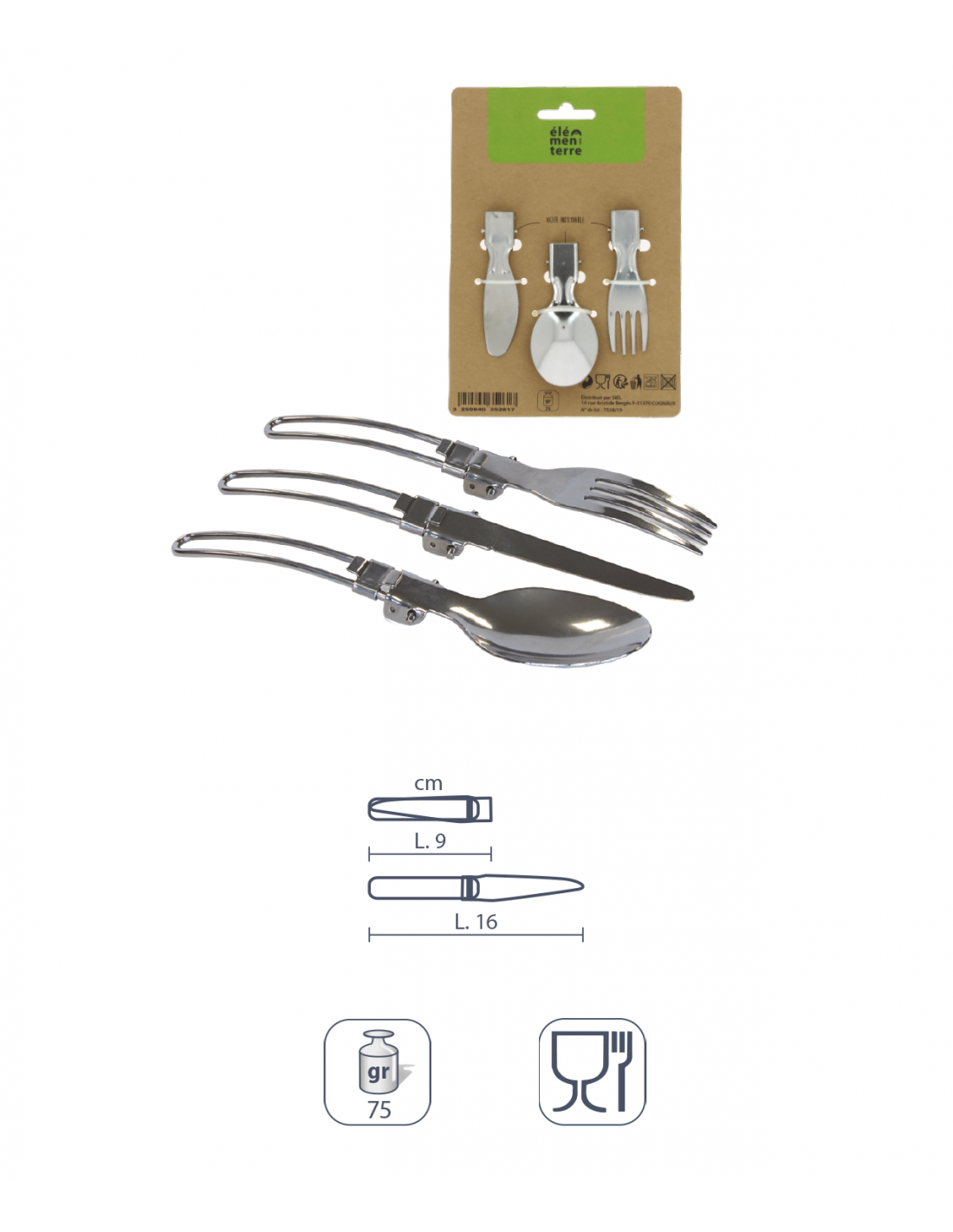 Couverts 3 pièces pliants : fourchette, couteau et cuillère
