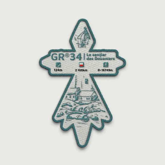 Entre terre et mer, le GR®34 est une invitation permanente au voyage côtier. Cet écusson incarne l’esprit breton : authenticité, liberté et horizons marins 🌊