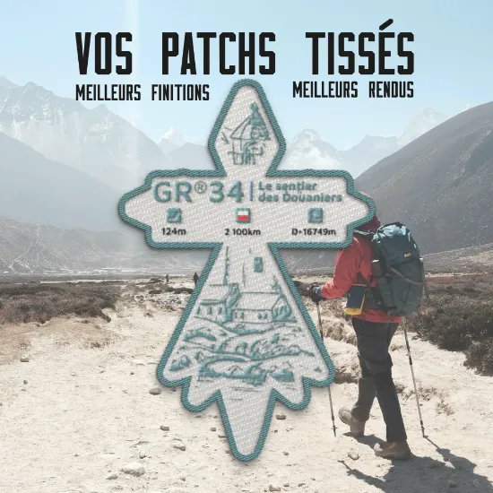 Un écusson textile dédié au GR®34, thermocollant et cousable, parfait pour personnaliser vos équipements outdoor avec l’âme du littoral breton.