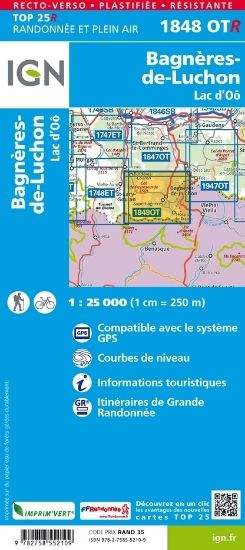 L'incontournable carte de randonnée IGN 1848OTR autour de Bagnères-de-Luchon et du lac d'Oô. A emporter dans son sac à dos.