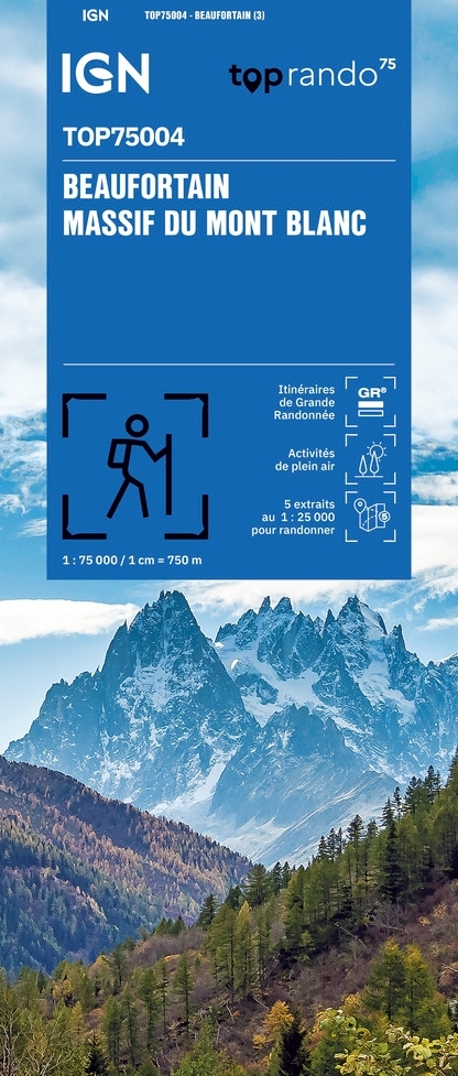 En complément, 5 extraits de TOP25 (à l’échelle du 1/25 000) sont intégrés à chaque TOP75 pour pratiquer des randonnées de 1 ou 2 journées dans des sites d’exception. La cartographie IGN à l’échelle du 1/ 25 000 est reconnue pour sa précision par les randonneurs et les alpinistes les plus exigeants.