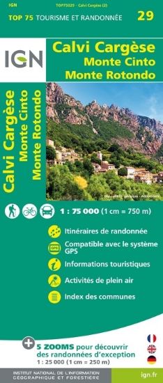 En complément, 5 extraits de TOP25 (à l’échelle du 1/25 000) sont intégrés à chaque TOP75 pour pratiquer des randonnées de 1 ou 2 journées dans des sites d’exception. La cartographie IGN à l’échelle du 1/ 25 000 est reconnue pour sa précision par les randonneurs et les alpinistes les plus exigeants.