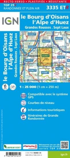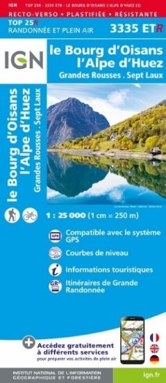 L'indispensable carte de randonnée IGN 3335ETR résistante aux alentours de Le Bourg-d'Oisans - l'Alpe d'Huez - Grandes Rousses - Sept Laux. A conserver dans son sac à dos