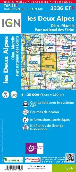 L'indispensable carte de randonnée IGN 3336ETR résistante aux alentours de Les Deux Alpes/P.Ecrins. A conserver dans son sac à dos