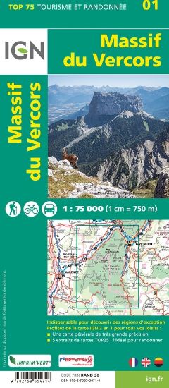 En complément, 5 extraits de TOP25 (à l’échelle du 1/25 000) sont intégrés à chaque TOP75 pour pratiquer des randonnées de 1 ou 2 journées dans des sites d’exception. La cartographie IGN à l’échelle du 1/ 25 000 est reconnue pour sa précision par les randonneurs et les alpinistes les plus exigeants.