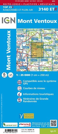L'indispensable carte de randonnée IGN imprimée en recto-verso aux alentours du Mont Ventoux. A conserver dans son sac à dos.