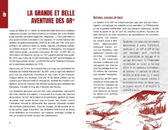 Chaque carnet de randonnée est à l’image d’un GR®, il raconte son histoire, les paysages et le patrimoine rencontrés en chemin. On y trouve le tracé de l’itinéraire illustré ainsi que des infos sur la FFRandonnée et ses actions.