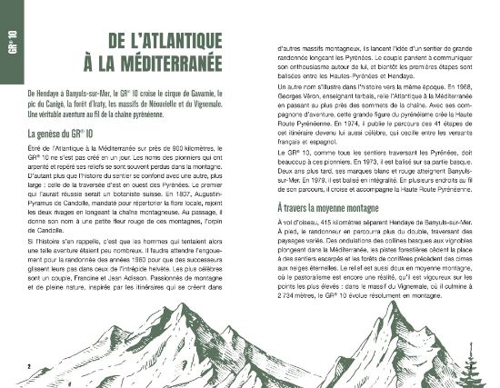 Chaque carnet de randonnée est à l’image d’un GR®, il raconte son histoire, les paysages et le patrimoine rencontrés en chemin. On y trouve le tracé de l’itinéraire illustré ainsi que des infos sur la FFRandonnée et ses actions.