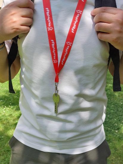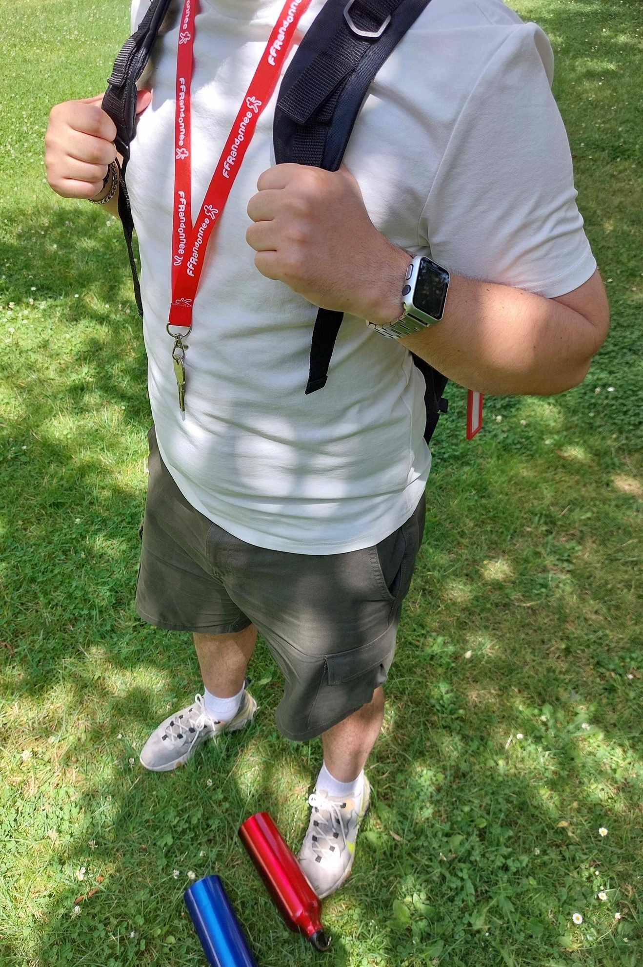 Portez fièrement les couleurs de la Fédération Française de Randonnées avec notre lanière de tour de cou de qualité supérieure. Idéale pour toutes vos aventures en plein air, cette lanière combine confort et praticité.