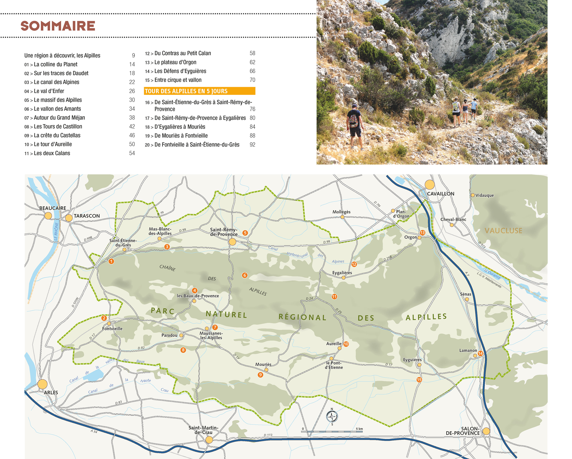 Niché entre Rhône et Durance, s’étend le Parc naturel régional des Alpilles, un territoire sculpté par la nature et façonné par l’homme. Alain Godon vous invite à suivre ses pas au gré de ces 15 randonnées – sélectionnées et choisies avec le Parc – plus belles les unes que les autres pour découvrir cette pépite de Provence. Villages de charme, senteurs de thym et de romarin, lumières envoûtantes, champs d’oliviers, cyprès, ciel bleu, les rochers calcaire qui émergent des plaines... rien ne manque.