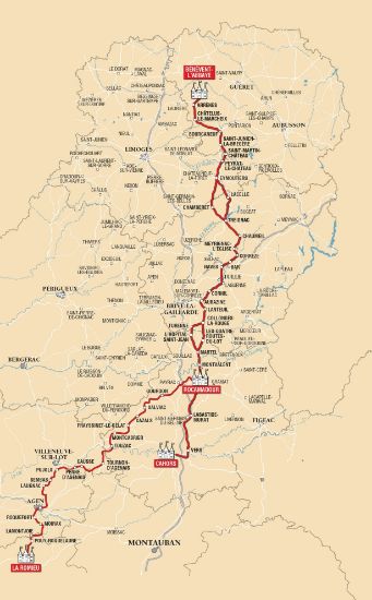 Après une première section, de 22 étapes pour rejoindre Rocamadour depuis Bénévent-l'Abbaye, ce guide propose de poursuivre vers Saint-Jacques de Compostelle via 2 itinéraires alternatifs.