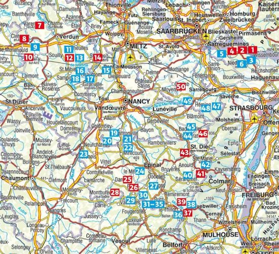La sélection d'itinéraires comprend des circuits dans le Parc naturel régional des Ballons des Vosges, le Parc naturel régional des Vosges du Nord et le Parc naturel régional de Lorraine ainsi qu'aux alentours du magnifique Lac de Madine.