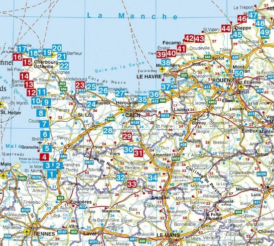 La Normandie, ancienne patrie des Normands et des Vikings, est principalement dominée par la mer. Les noms « Côte d'Albâtre », « Côte de Nacre » et « Côte Fleurie » promettent un extraordinaire paysage côtier. De belles et interminables sables de plage, des dunes légèrement vallonnées et des prés salés alternent avec des côtes escarpées très romantiques, des falaises de craie d'un blanc lumineux et de petites anses rocheuses.