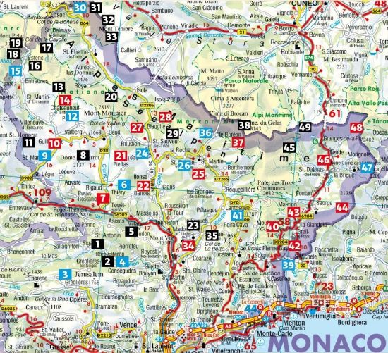 Le plus beau joyau de cette région est le Parc National du Mercantour, le plus récent des six parcs nationaux français, qui s’étend de la Vallée des Merveilles à l’est jusqu’au département des Alpes-de-Haute-Provence en passant par le Mont Gélas à 3143 m.