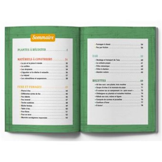 Vous y trouverez des pas-à-pas pour fabriquer vos ustensiles, allumer un feu, récolter et purifier de l’eau — des compétences essentielles quand on vit quelques jours en pleine nature sans assistance.