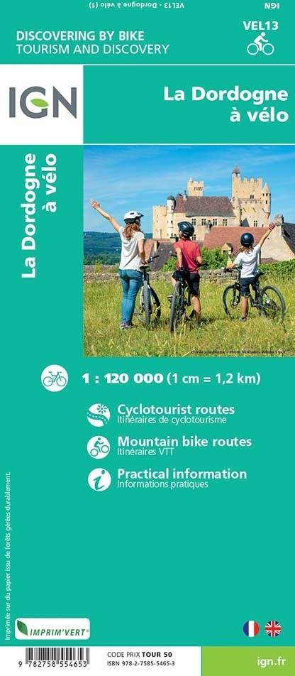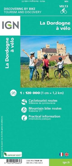 Une carte à l’échelle du 1 : 120 000 réalisée en partenariat avec la FFvélo pour découvrir la Dordogne à vélo.