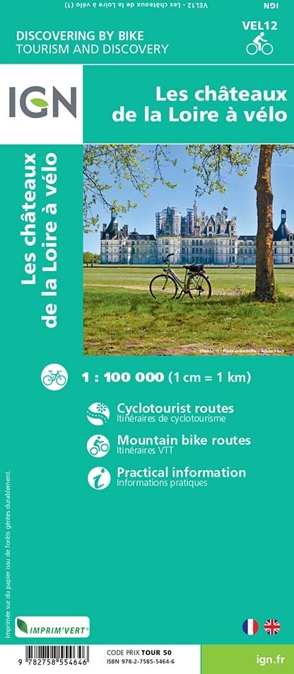 Une carte à l’échelle du 1 : 100 000 réalisée en partenariat avec la FFvélo pour découvrir les châteaux de la Loire à vélo.