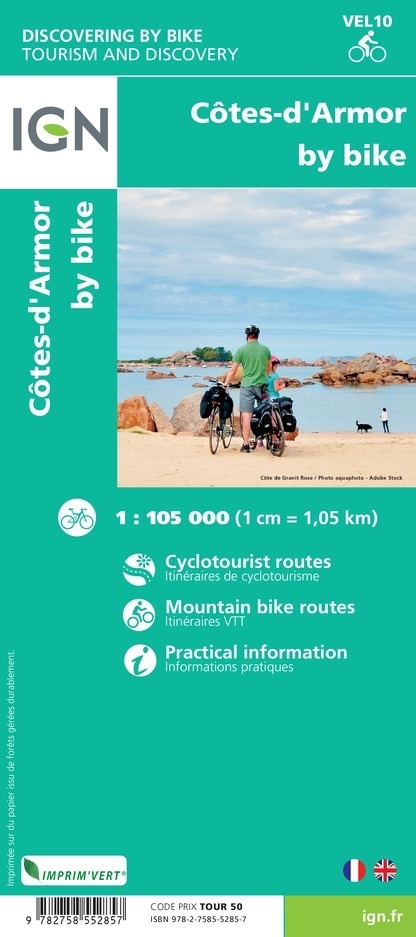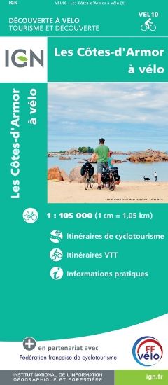 Une carte à l’échelle du 1 : 105 000 (1cm = 1,05 km) réalisée en partenariat avec la FFvélo pour découvrir les Côtes d'Armor.