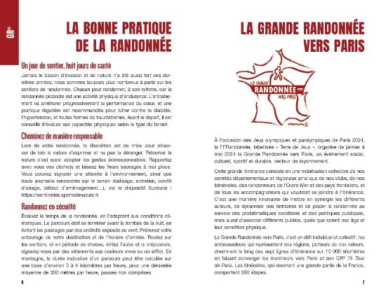 Pour l’édition 2024 de ce carnet de randonnée, retrouvez une présentation de la Grande Randonnée vers Paris qui s’inscrit dans le cadre des Jeux Olympiques. Plus d'informations sur la Grande Randonnée vers Paris.