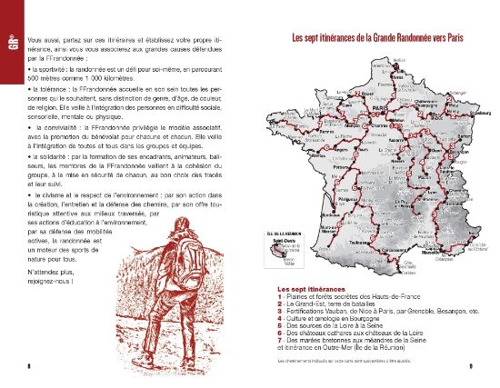 Chaque carnet de randonnée est à l’image d’un GR®, il raconte son histoire, les paysages et le patrimoine rencontrés en chemin. On y trouve le tracé de l’itinéraire illustré ainsi que des infos sur la FFRandonnée et ses actions.