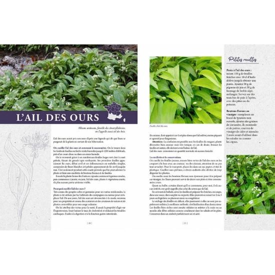 Il propose des fiches pratiques pour identifier et récolter diverses plantes sauvages selon les saisons, telles que l'ail des ours au printemps, les myrtilles en été, les cèpes en automne ou le gui en hiver.