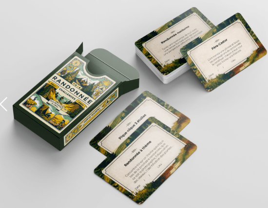 Découvrez 54 défis, qui vous permettront de vivre des moments inoubliables à chaque sortie. Que vous soyez seul, entre amis ou en famille, ce jeu de cartes rendra chaque randonnée unique et mémorable.