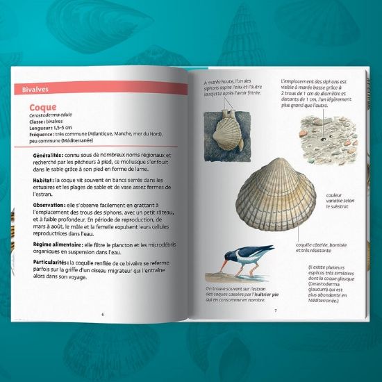 Le guide présente les coquillages les plus fréquents des côtes méditerranéennes et océaniques — bivalves échoués, moules, mollusques… Chaque page est richement illustrée et accompagnée de textes accessibles, pour mieux comprendre la vie marine et l’histoire que racontent ces coquilles.