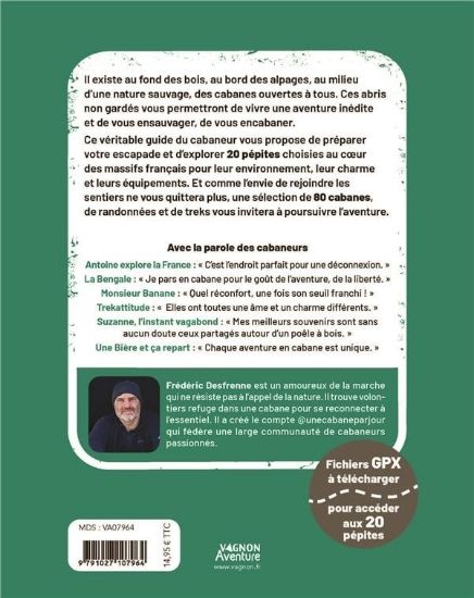 Un mot sur l'auteur : Frédéric Desfrenne est un marcheur passionné. Pour lui la cabane est une invitation à l’autonomie et au minimalisme. Un appel de la nature. Il est le créateur du compte Instagram @unecabaneparjour (18K).