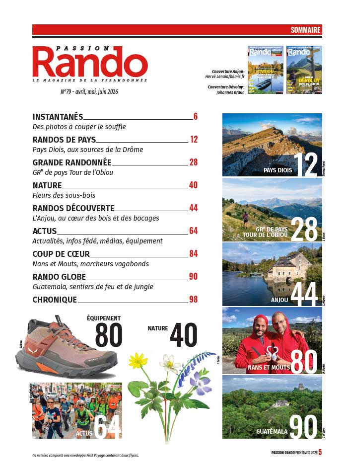 Avec le retour des beaux jours, Passion Rando revient pour accompagner tous les amoureux du sentier. De l'Anjou verdoyant aux volcans du Guatemala, en passant par les crêtes sauvages du Dévoluy, ce numéro 79 est une invitation à chausser les bottes et partir explorer.