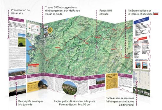 Cette nouvelle collection est spécialement conçue pour celles et ceux qui veulent vivre leur première expérience de randonnée itinérante sans contrainte. Les randonneurs aguerris apprécieront aussi la praticité de ce format. Avec la topocarte, il n’y a plus qu’à marcher !