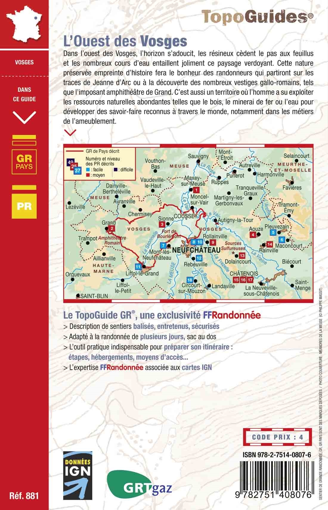 Dans l'ouest des Vosges, l'horizon s'adoucit, les résideux cèdent le pas aux feuillus et les nombreux cours d'eau entaillent joliment ce paysage verdoyant. Cette nature préservée empreinte d'histoire fera le bonheur des randonneurs qui partiront sur les traces de Jeanne d'Arc ou à la découverte des nombreux vestiges gallo-romains, tels que l'imposant amphithéâtre de Grand.