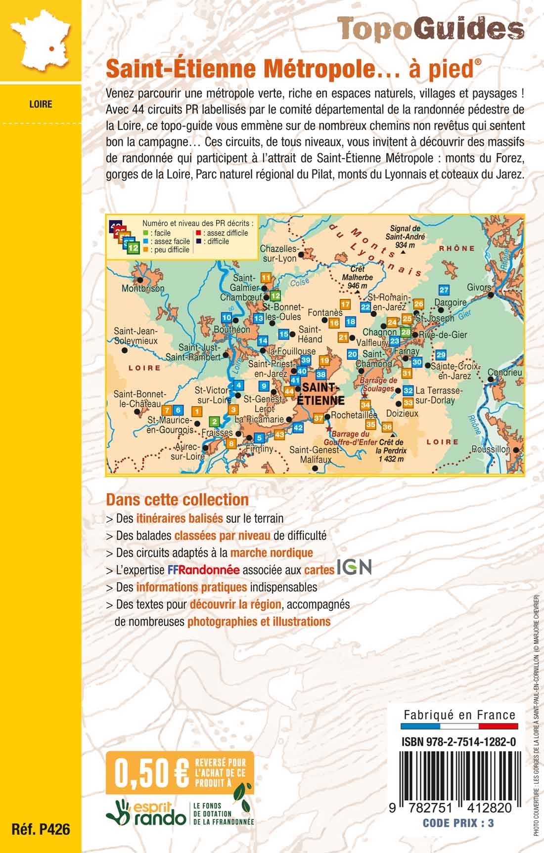 Le topoguide Saint-Étienne Métropole… à pied vous accompagne à travers 44 itinéraires de randonnée dont 8 adpatées à la marche nordique, adaptés aux marcheurs de tous niveaux. Du Parc naturel régional du Pilat aux Monts du Lyonnais, en passant par les Gorges de la Loire, ce guide offre un large éventail de circuits, y compris des randonnées thématiques mettant en valeur le patrimoine industriel local et la boucle verte de Saint-Étienne.